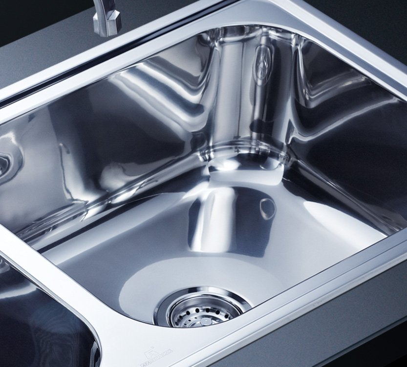 阿發(fā)水槽立邊采用國際先進的10-25°小R角一次成型拉伸技術,更具立體感與時尚潮流,亦能充分擴展水槽利用空間;一次成型拉伸技術,杜絕了焊接工藝易產(chǎn)生的水槽生銹,脫焊事故,充分保障水槽50年以上的使用壽命