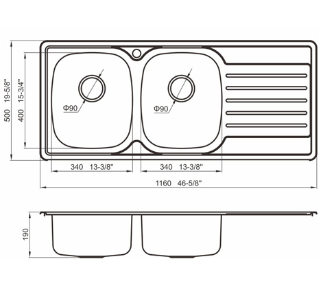 槽底采用斜面壓痕,四輻導流槽設計,與平面壓痕和無痕水槽相比,導水更為流暢,下水更迅速,能有效防止積水,消除沉淀物